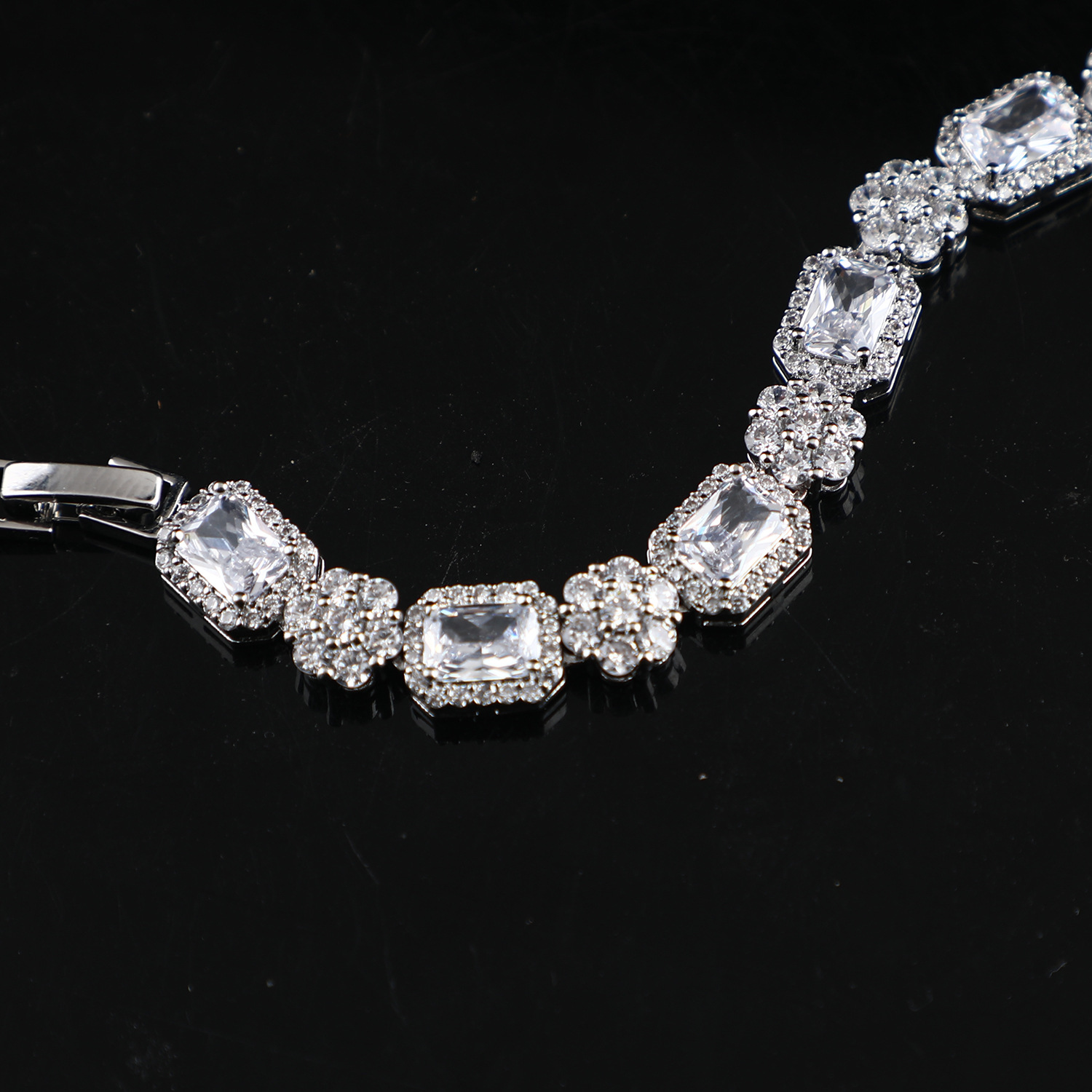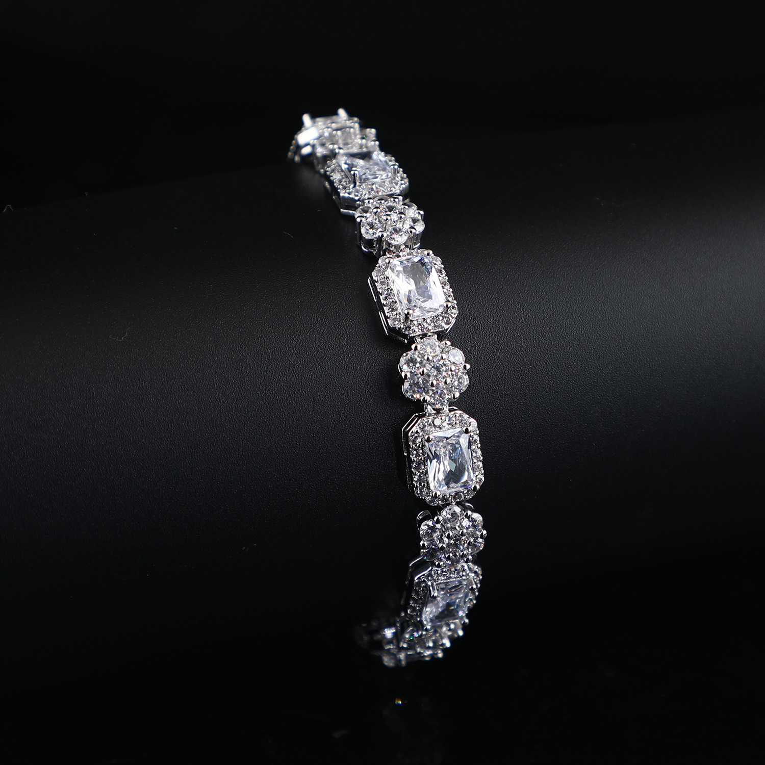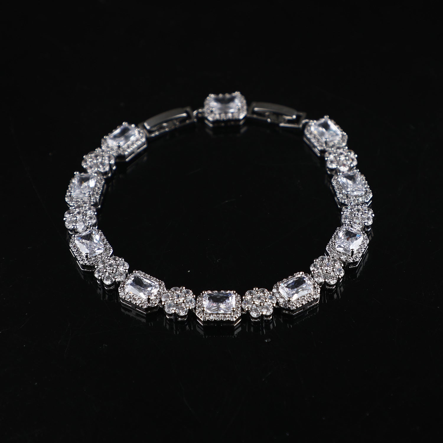 Copper Material Real White Gold Full Zircon Claw Chain Bracelet