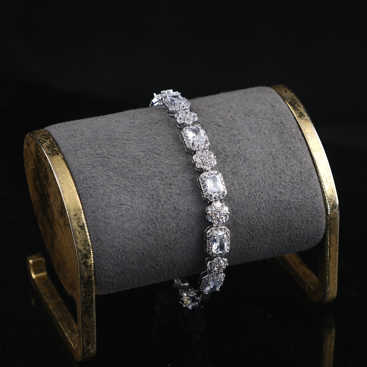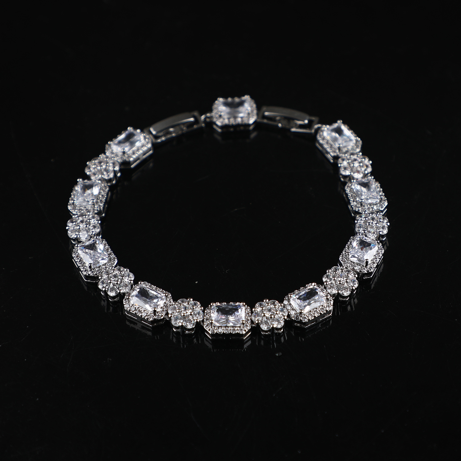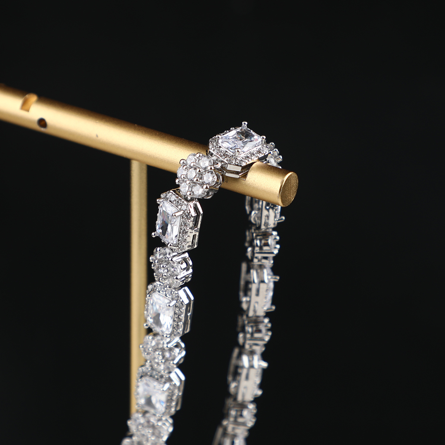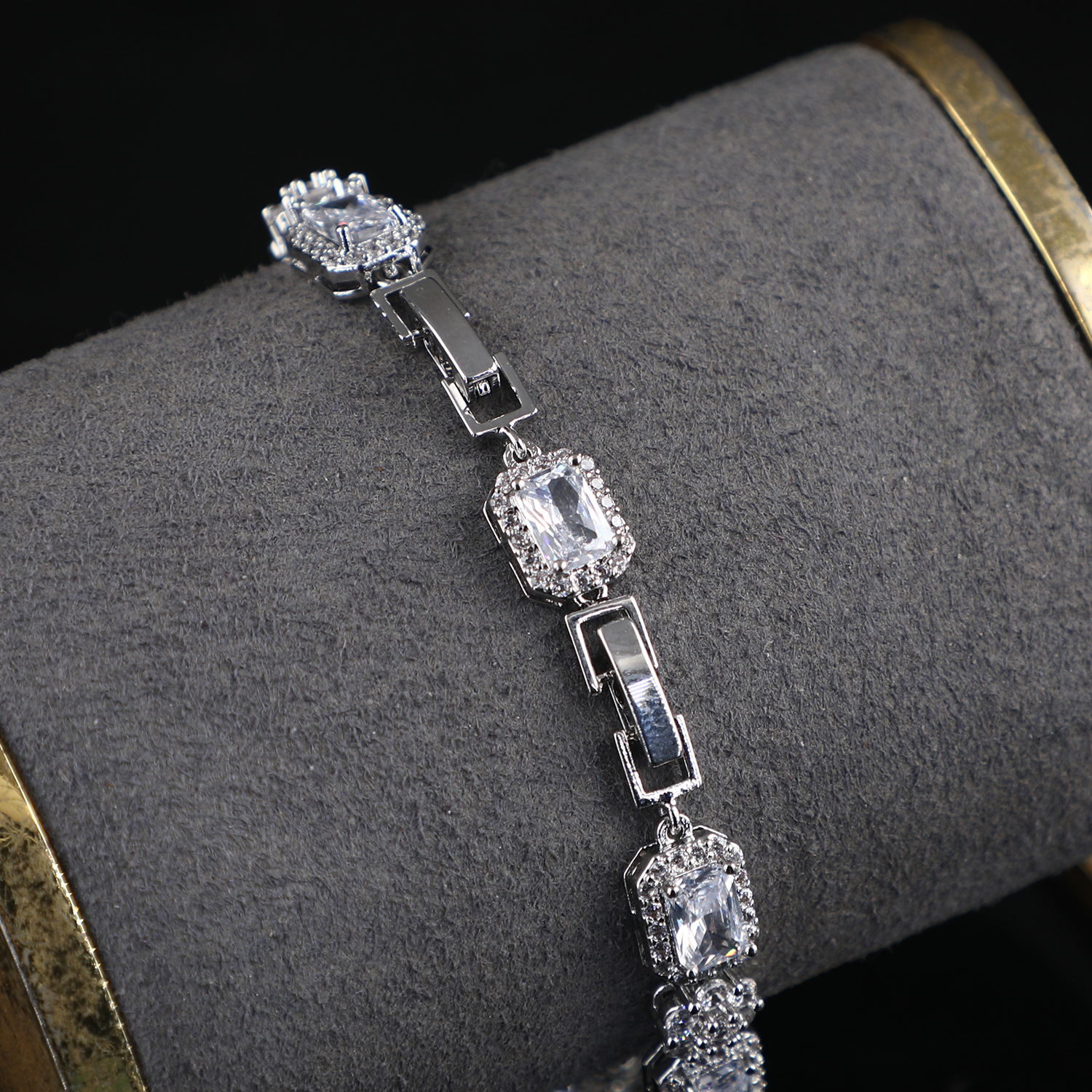 Copper Material Real White Gold Full Zircon Claw Chain Bracelet